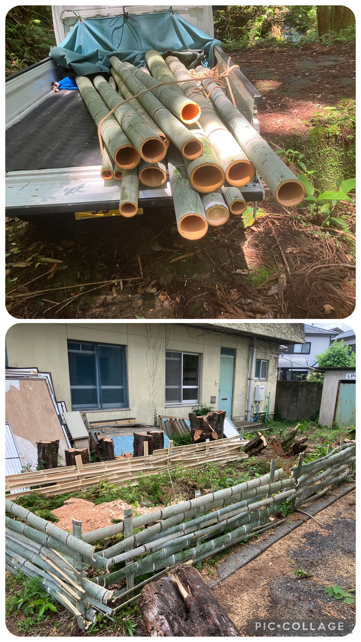 間伐した竹の活用も色々と思案中です。新拠点ひなむぎベースの花壇の柵として少し使用してみました。