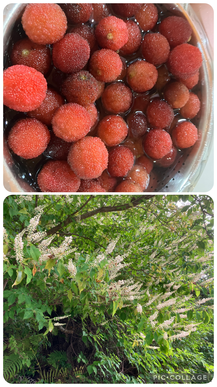 ⑤この時期の見どころとして、5月下旬~ウツギの花から梅雨入り前にヤマモモが生り、月末にはヤマモモが熟し、リョウブの花が咲く、といった感じです。