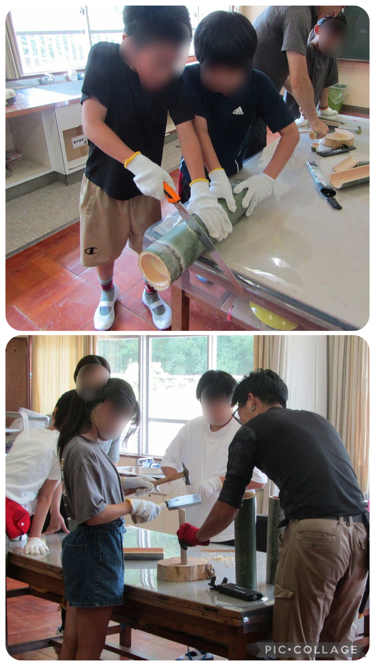 竹は加工しやすく、小学生でも簡単に作ることができました。