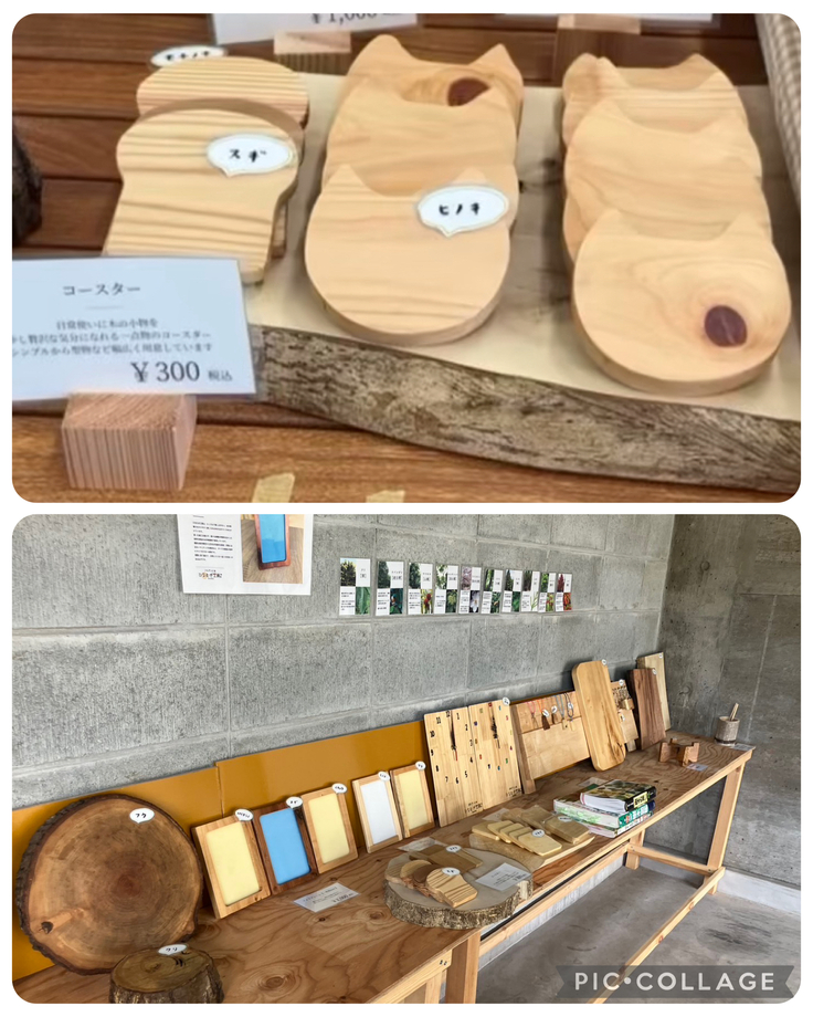 現在はフウ、スギ、ヒノキ、イチョウ、ソメイヨシノ、モチノキ、クスノキ、ウバメガシの素材が中心となっています。