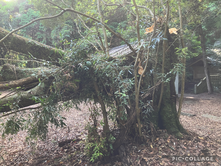 台風の翌日に町内の神社から連絡があり、「大きな倒木があるので処理できないか」とご依頼いただきました。