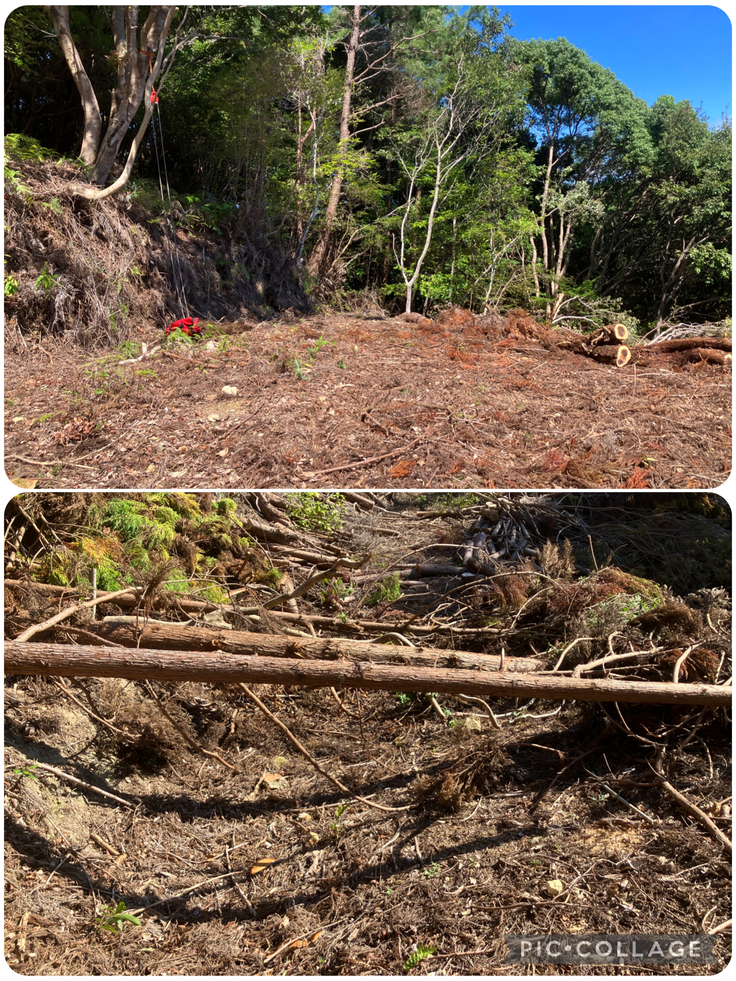 本来であれば、伐った木を余すことなく使っていきたいのですが、少し時間に追われていますので寄せるのみとなっています。