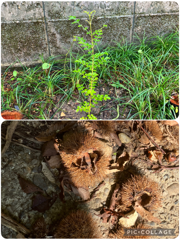 ②今年も栗の実が沢山生りました。中身は小さいですが、イガはとても大きいです。