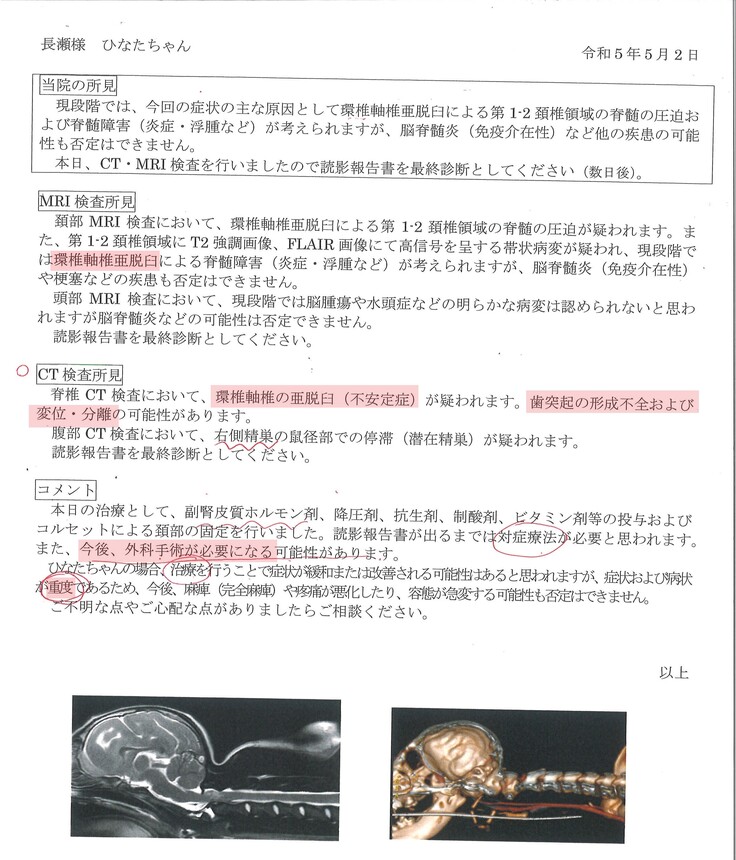 検査結果は環軸椎亜脱臼でした。