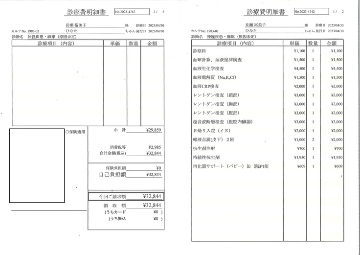 最初の急な検査費、入院費、診察代、お薬代でお金が厳しい状態になり