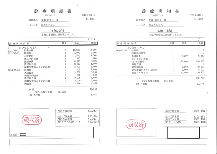 ▶︎ 4.掲載している資料についてページ上に掲載している診断書や診療明細書などの資料は全て動物病院から掲載の許諾を得ておりま