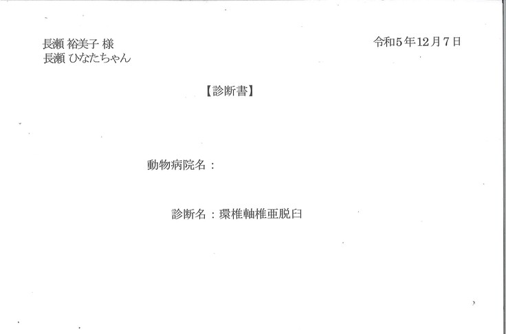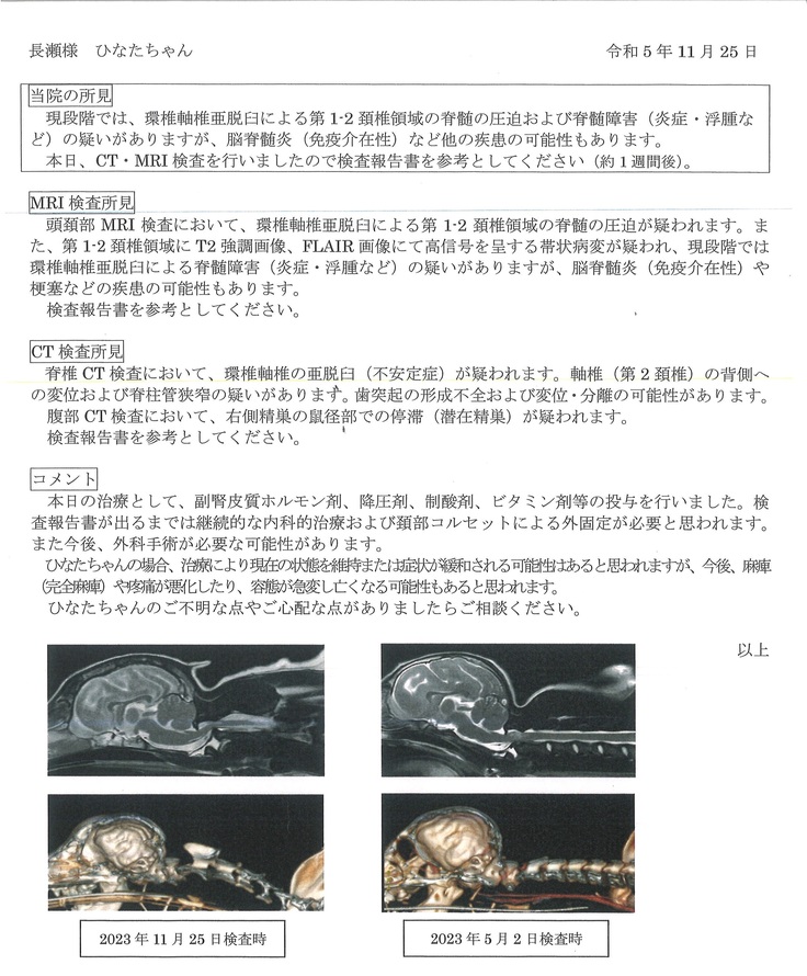 そう思っていたのですが、『ひなた』は体が大きくなった分脊髄の圧迫がひどくなっていました。