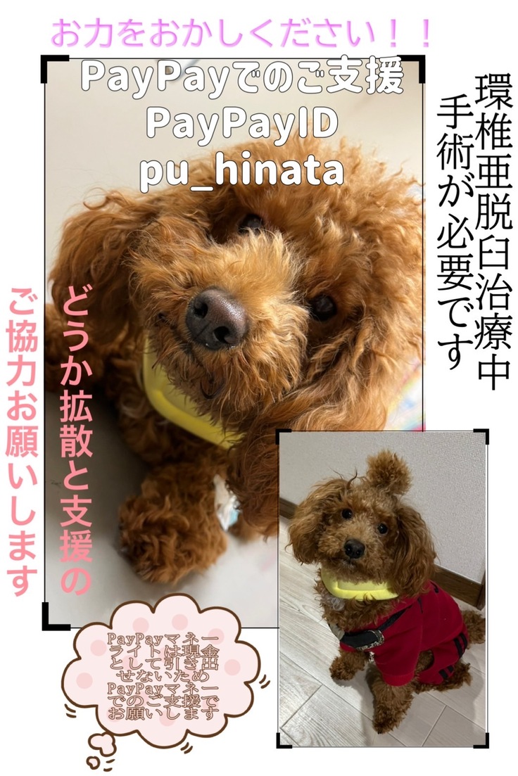 環軸椎亜脱臼と診断されてから検査費用を作り出すため常に長時間のお留守番をしているひなたです。今回のプロジェクトが成功すれば少しバイトも減らせて一緒に遊べる時間を作り出せると思います。