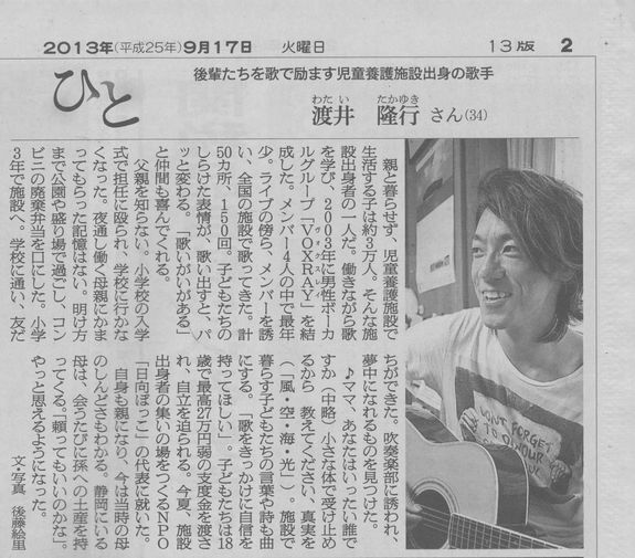 NPO法人社会的養護の当事者参加推進団体日向ぼっこの理事長をしております渡井です。私は親からの虐待を受け、社会的養護の下でお世話になった一人です。私達は社会的養護を経験した方、経験している方、また社会的養護が必要だったにもかかわらず、それを受けられなかった方が集える日向ぼっこサロンを作り、そこで何気ない事を皆で色々語り合ったり、深刻な悩みを個別で相談を受けたりしています。また、社会的養護の当事者が社会で平等となれるように自分自身の気持ち(親の事、過去の事)の整理をしながら、社会に声を発信する集約・啓発事業も行っています。