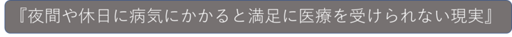 在宅診療に至っては24時間機能しているのはたった数か所の医療機関のみ・・・