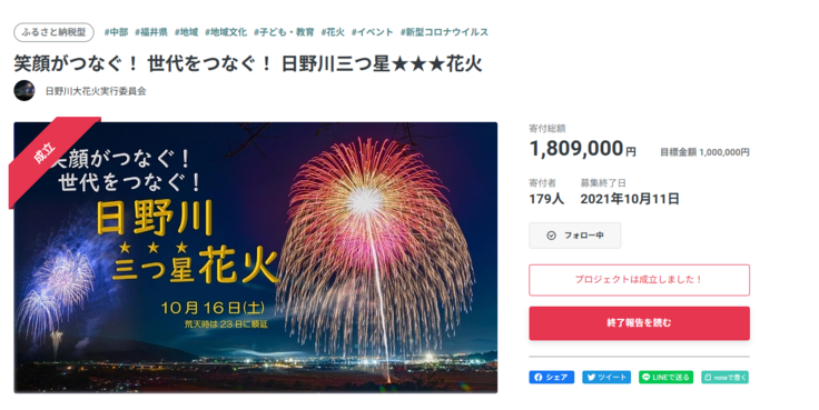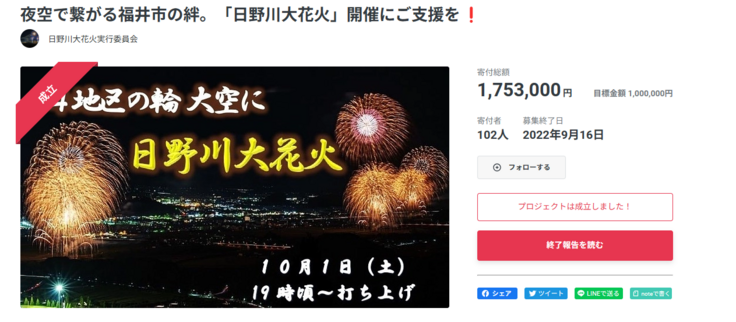 クラウドファンディングが成立しなければ、大変小規模な花火になってしまいます。クラウドファンディングに挑戦する時は、3回目となっても、どれくらい応援していただけるか、1・2回目同様達成出来るのか正直不安でした。