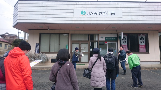ちょうどこの日は、筆甫地区の人気イベント「ひっぽのへそ大根づくり体験会」。この体験会の一環として、筆甫地区の事業をご説明させてもらいお店造りの現地を参加者の皆さんにみてもらうことができました。