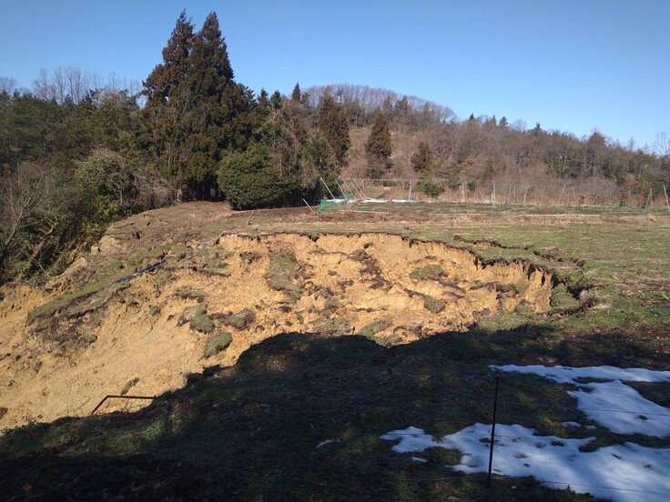 地震で崩れてしまった畑の一部ですが、