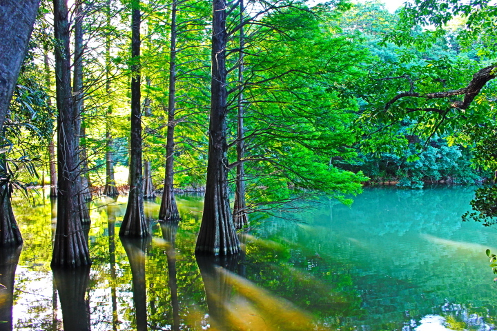 新津先生に、ほたる池のイメージに合う写真をご用意していただきました。福岡県にある落羽松という水面下に根を張る木だそうです。このような自然の美しさを感じられる池に復活できればと私も思います。東
