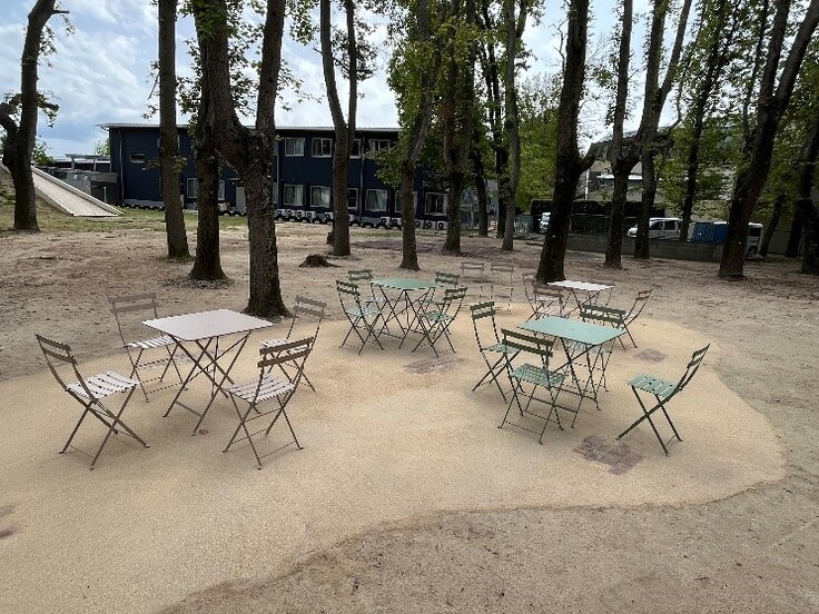 ひらたの杜を訪れた方々にゆっくりとくつろいでいただくために、クラウドファンディングの支援金を充当し杜の中央部付近に憩いのスペースを設けました。