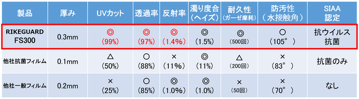 《フィルム性能比較表 出展元:リケンテクノス株式会社》