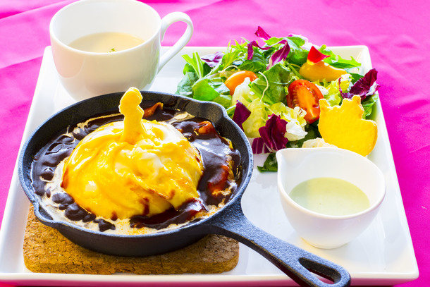 ●料理:昼はベルをイメージした軽快なカフェスタイル。夜はビーストをイメージした重厚なレストランスタイル。二面性を持たせることでよりお客様に物語の世界を楽しんでいただけます。