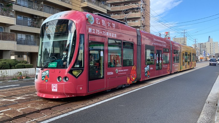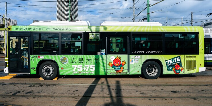 1月15日には、お披露目式を執り行い、ベースとなる路面電車「Greenmovermax5100形」へのラッピングが完成した路面電車のほか、同じくオリジナルデザインでラッピングしたバスも登場しました!ラッピングバスは広島市内2番線、6番線を主に運行しています。