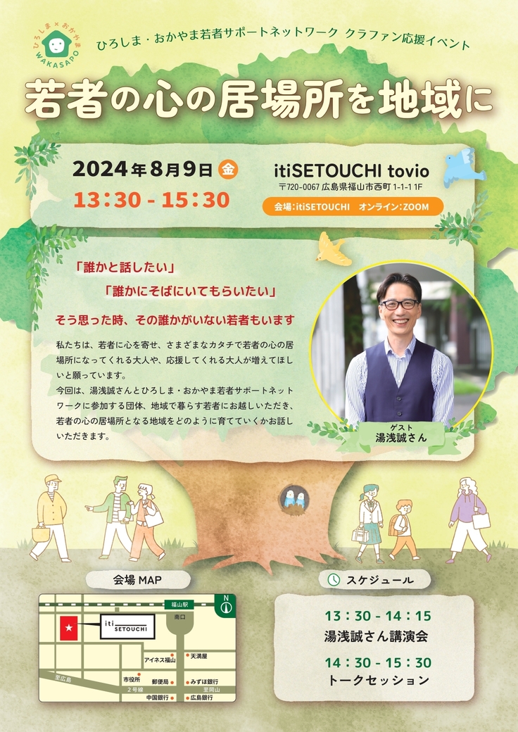 【ぜひご参加ください】8/9「若者の心の居場所を地域に」@福山市&オンライン