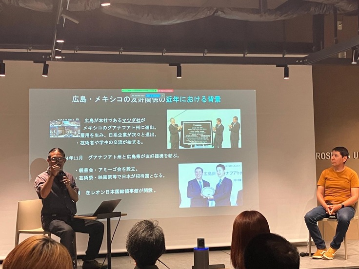 広島大学のミライクレアにて本プロジェクトの説明、それからアーティストのカルロスの今までの作品・キャリアの話をさせて頂きました。