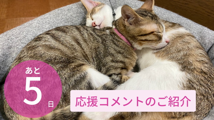 皆様からの温かいメッセージにとても勇気づけられます。 お気持ちに添えられるよう 猫ちゃん達の為必ずプロジェクトを達成し もっと多くの命を保護できるよう頑張って参ります。