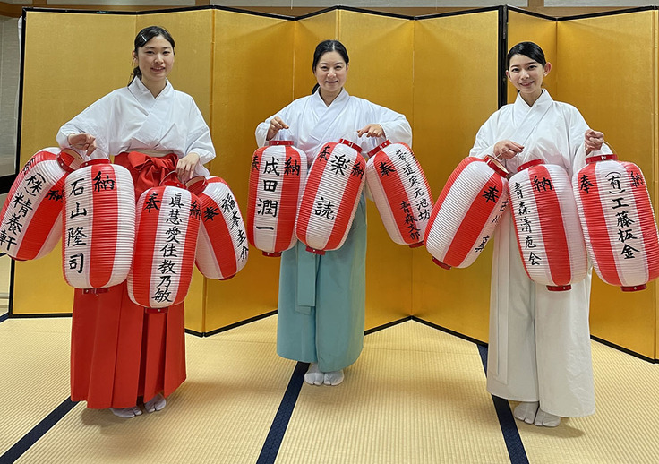 「いろんな形でお名前掲載コース」の紅白の提灯は、今年の12月31日~1月3日の間、境内に掲げ、点灯いたします。