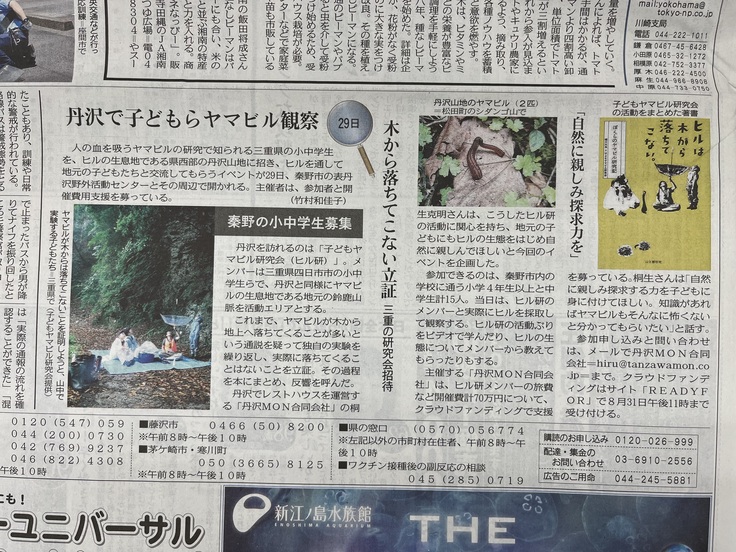 子どもヤマビル研究会の活動を以前より取材されている東京新聞さんから、今回交流会の取り組みを詳細に新聞紙面やWEB版で紹介していただきました。ありがとうございます!