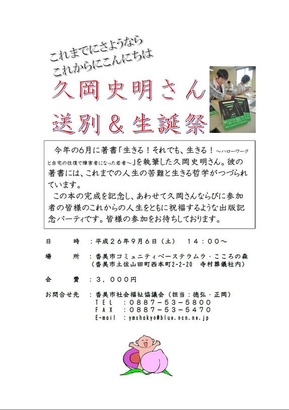 久岡史明さんの出版記念パーティーを9月6日(土)14時~おこないます。