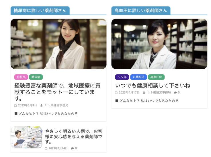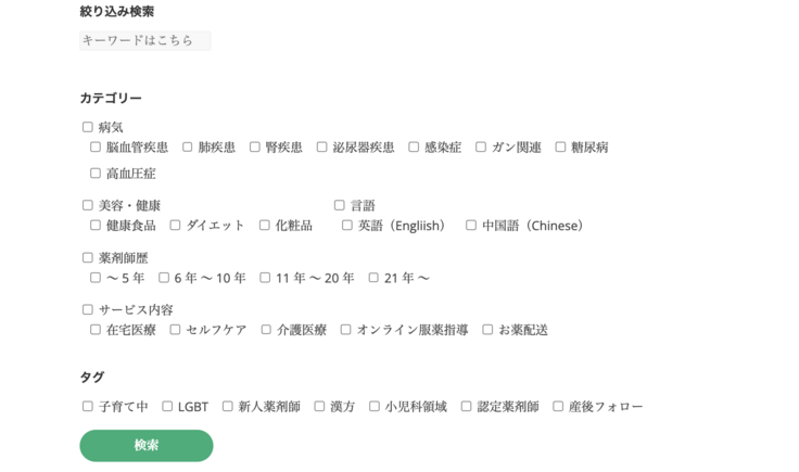 その他にも、英語が話せる、美容に詳しい、ダイエットに詳しい、筋トレに詳しい、LGBTに理解がある、海外在住だけど日本の薬剤師に聞きたいなど。
