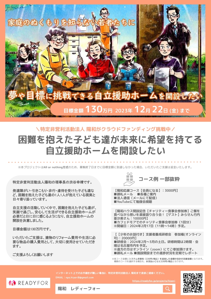 未来の子ども達の為、SNSでのシェアなど、最後の最後まで応援して頂けますと幸いです。