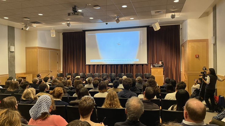 集会場で150人を超える学生、一般の方々に集まっていただきました。