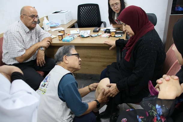 本日の診療が終わると、パレスチナではどこでも昼食が用意されます。と・・その時、メディカルセンターの設立者から私と「奉仕団」に記念となるモニュメントの送呈が待っていました。感謝・感激です!!!パレスチナ難民の皆さんの「心」が私たちに届けらえたように感じました。