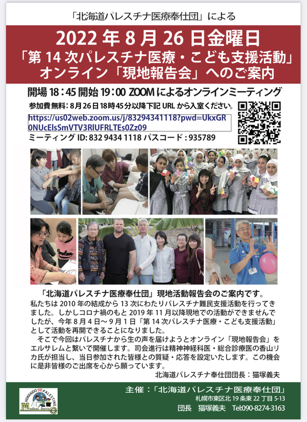 現在実施中の「第14次パレスチナ難民医療・子ども支援活動」の報告会を現地からオンラインで行います!