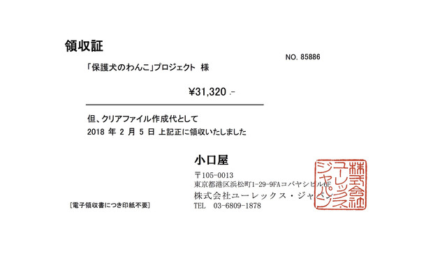 600枚(200セット分)を製作して、費用は31.320円かかりました。*領収書を添付します。