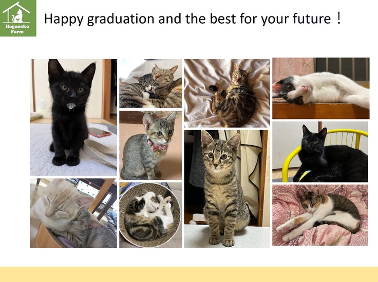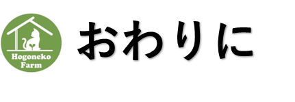 最後に、これまで当団体を直接的に応援、支援をして頂いている皆様、SNS等で応援メッセージをくださり、一緒に情報を拡散し、いつも目標達成まで伴走して下さる力強い皆様、当団体より保護猫を家族として迎え入れ、幸せ報告をして励ましてくださる皆様、迎え入れた命と真正面から向き合い、高額な医療費を使い、最後まで懸命な看護・介護で命を看取ってくださった、本当に心優しい貰い手ご家族の皆様 、全国の動物保護に携わる皆様に、心より御礼申し上げます。今後とも、引き続き保護猫応援ファームをよろしくお願い申し上げます。