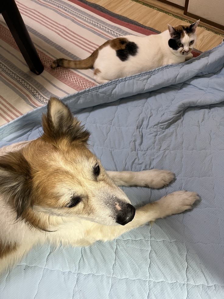 体調は、元気に尻尾を振り、お外チーム(TNRM組の猫たち)のご飯の残りを横取りする日もあれば、朝からなかなか立てなくて、悲しそうな表情をして過ごす日もあり、まちまちではありますが…