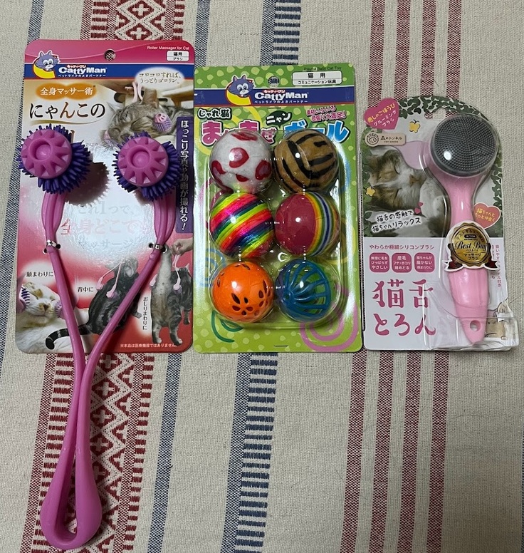 当団体ではいつも餌や猫砂が最優先で、おもちゃやグッズは買ってあげられないため、大変嬉しいです。