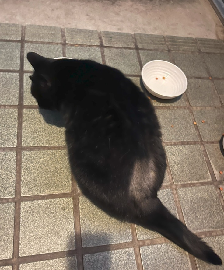 最近、ご飯の時間に、いつもそばまでやってくる黒猫ルナちゃん(メス)が、姿を見せない時期がありました。そして、再び現れたのですが、なんだか、よそよそしいので、オカシイ💦と思っていました。