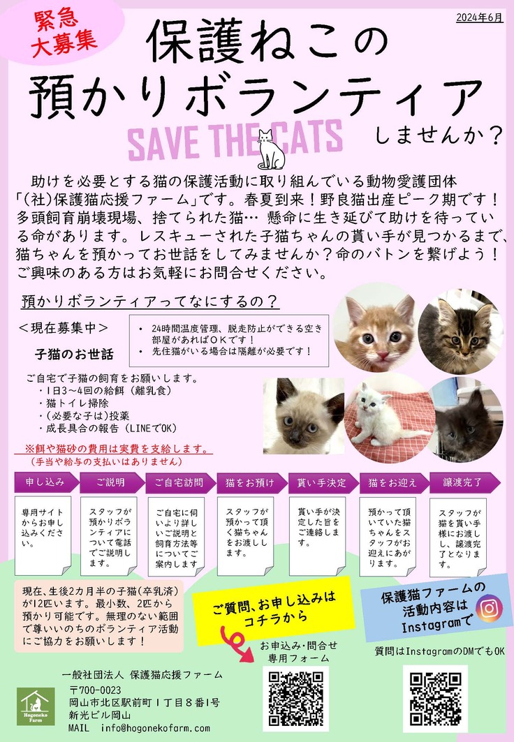 そして、岡山県内に住居がある方に限りますが、預かりボランティアさんを募集させて頂くことにしました。