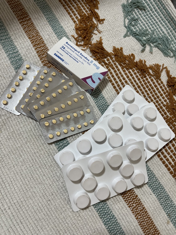 ↑ トットおじいちゃんのお薬です。朝晩、最大限のお薬を飲んでいます。