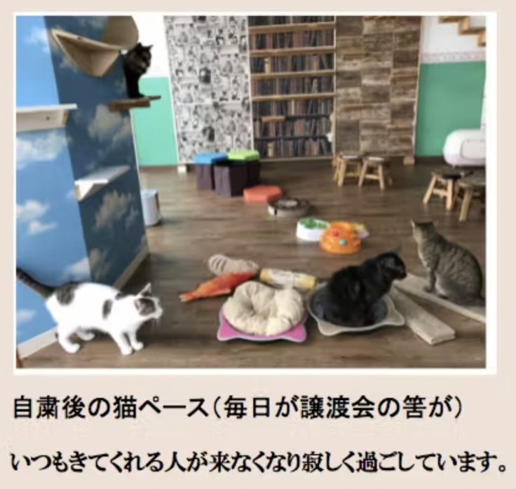 アフターコロナになった今も、客足が中々戻りません。ボランティアスタッフと、チラシを3万枚巻いたり、フード募集や、猫砂募集など行なったりしました。