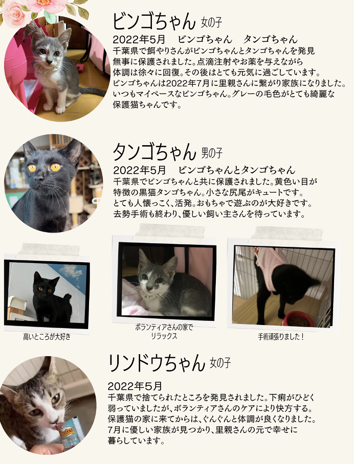 引き続き子猫レスキューと保護猫に里親を見つける活動を続けて行きたいと願っています。