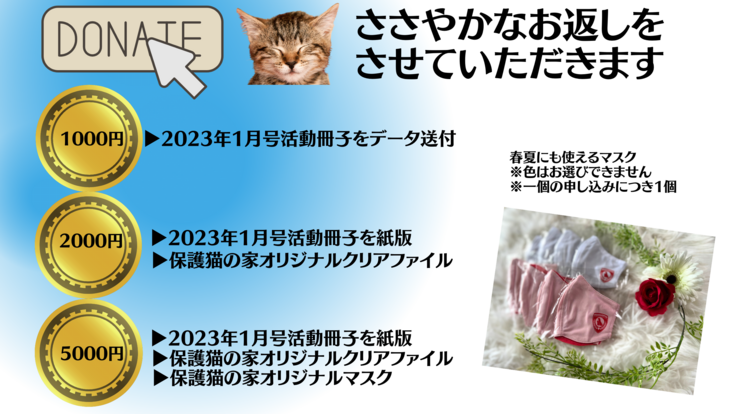 【今回募った費用で実施するプロジェクトの内容】 保護猫活動を継続させるプロジェクト 募った費用は保護猫活動に役立てられます 【資金使途と項目ごとの金額の内訳】 ・保護猫活動:フード費用10万円分 ・保護猫活動:猫砂費用 10万円分 ・保護猫活動:ワクチン代10万円分 ・保護猫活動:避妊手術代15万5千円分 ・家賃費(3ヶ月分)413,000円 ・クラウドファンディング手数料 132,000円