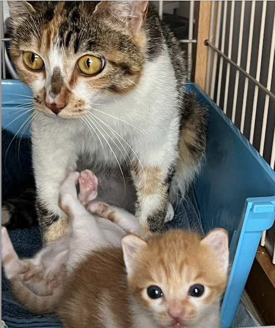 保護したお母さん猫、子猫のめもぱっちりと開きました。