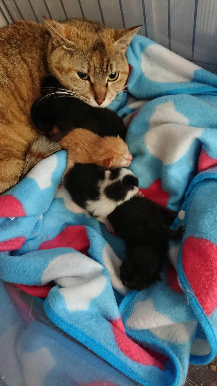 外出の用意をしていて様子を見に行くと仔猫が生まれていました。