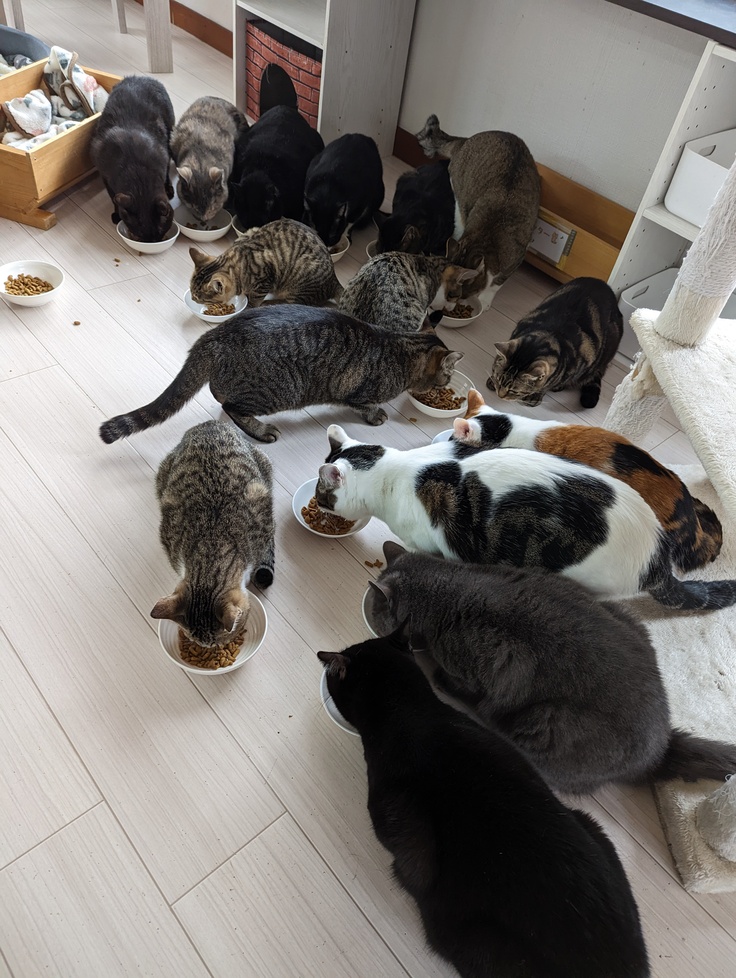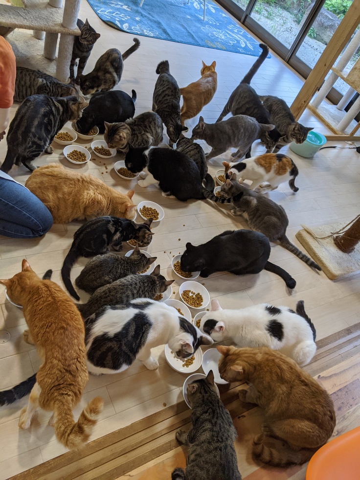 現在、オハナでは24匹、自宅では32匹の保護猫が暮らしております。
