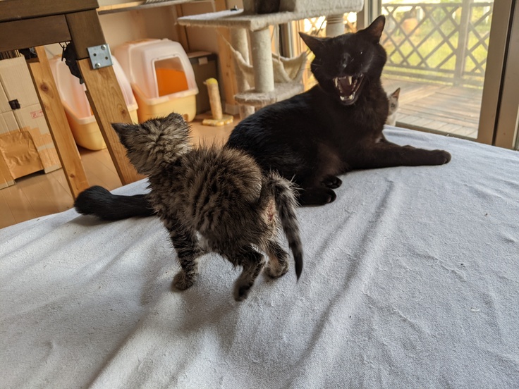 ‘Ohanaで保護する際には全頭譲渡予定ですので病気等が蔓延しないように保護の段階で病気の検査や駆虫を行います。その際にFIVなど持病等が判明する子もいます。その子たちは現在は自宅にて保護をし飼い猫としてお世話をしております。またお店の子と織の合わない子、どうしてもマーキングをしてしまう子も自宅にて保護をしております。また病気になった子も自宅にて治療を行っております。