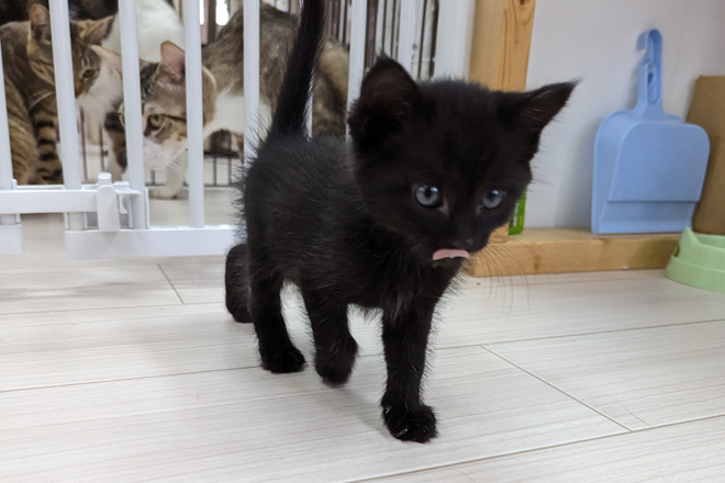 オハナではこの子とアクアという黒子猫と一緒にお世話をすることに。