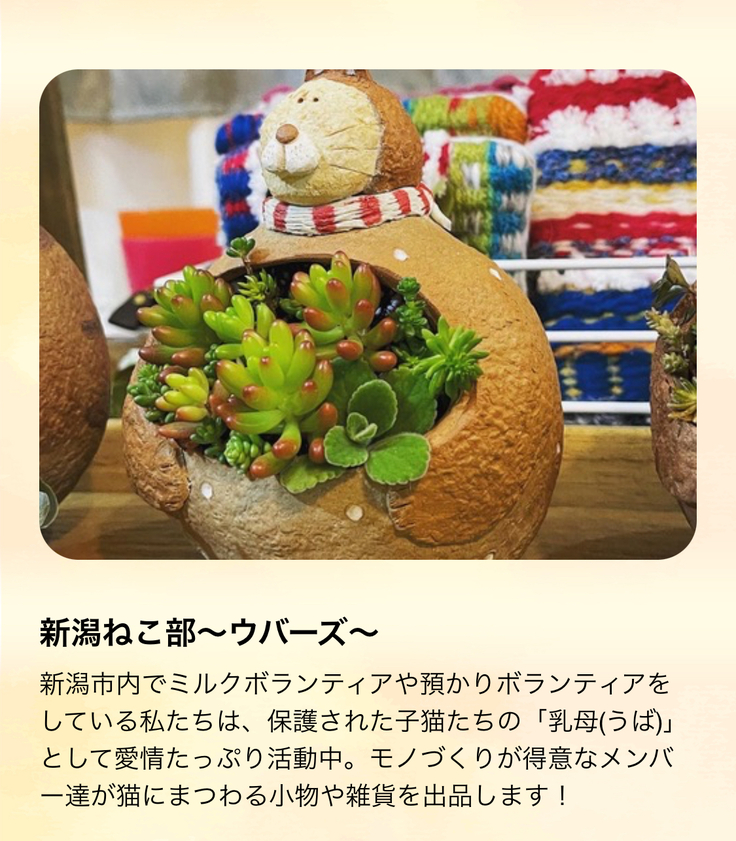 ・新潟の人気作家さんによる可愛い猫雑貨をプレゼント(布小物2点程度)※色柄おまかせ
