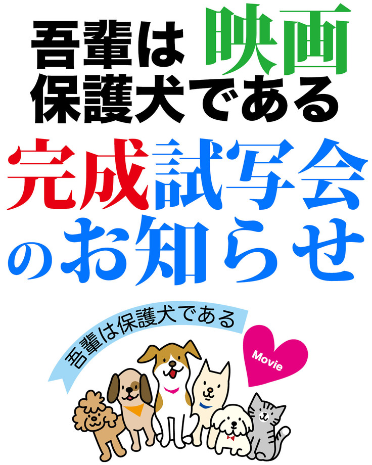 お伝えしておりました映画「吾輩は保護犬である」の完成試写会を予定通りの日程にて行います。